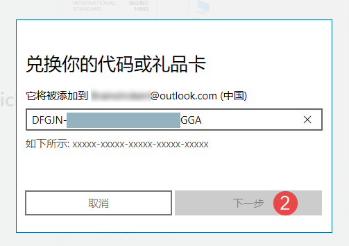 二、在弹出窗口粘贴激活码,点击「下一步」兑换完成后,即可在商店下载付费版。