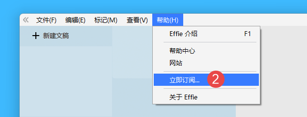 二、登录后依次点击菜单栏「帮助 > 立即订阅」按钮: