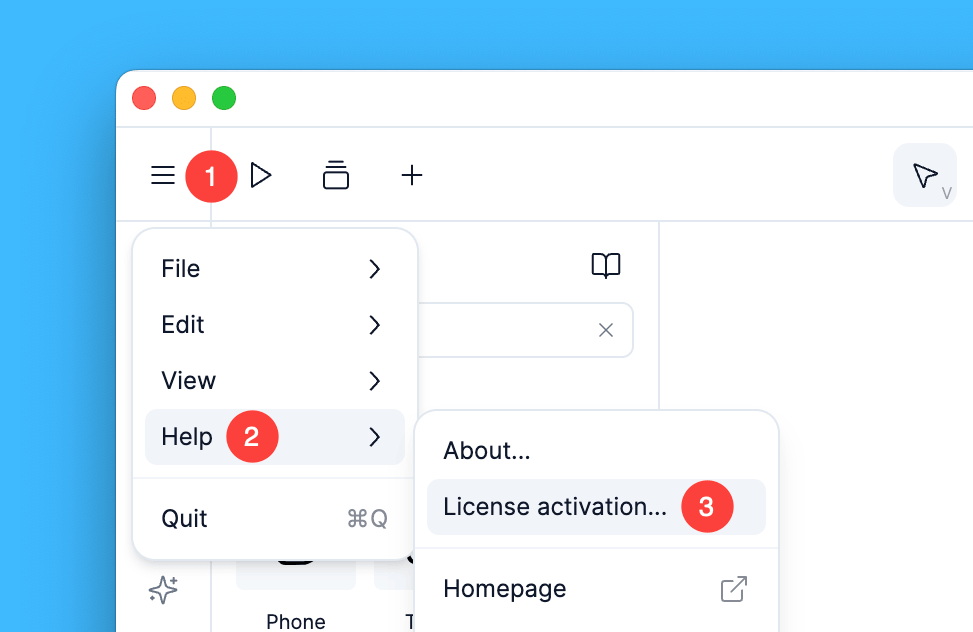 一、运行 Frame0 后,点击左上角「≡ > Help > License activation...」;