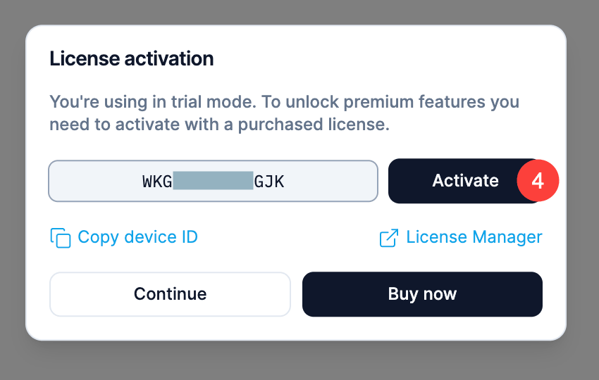 二、在窗口中粘贴激活码,点击「Activate」即可完成激活。