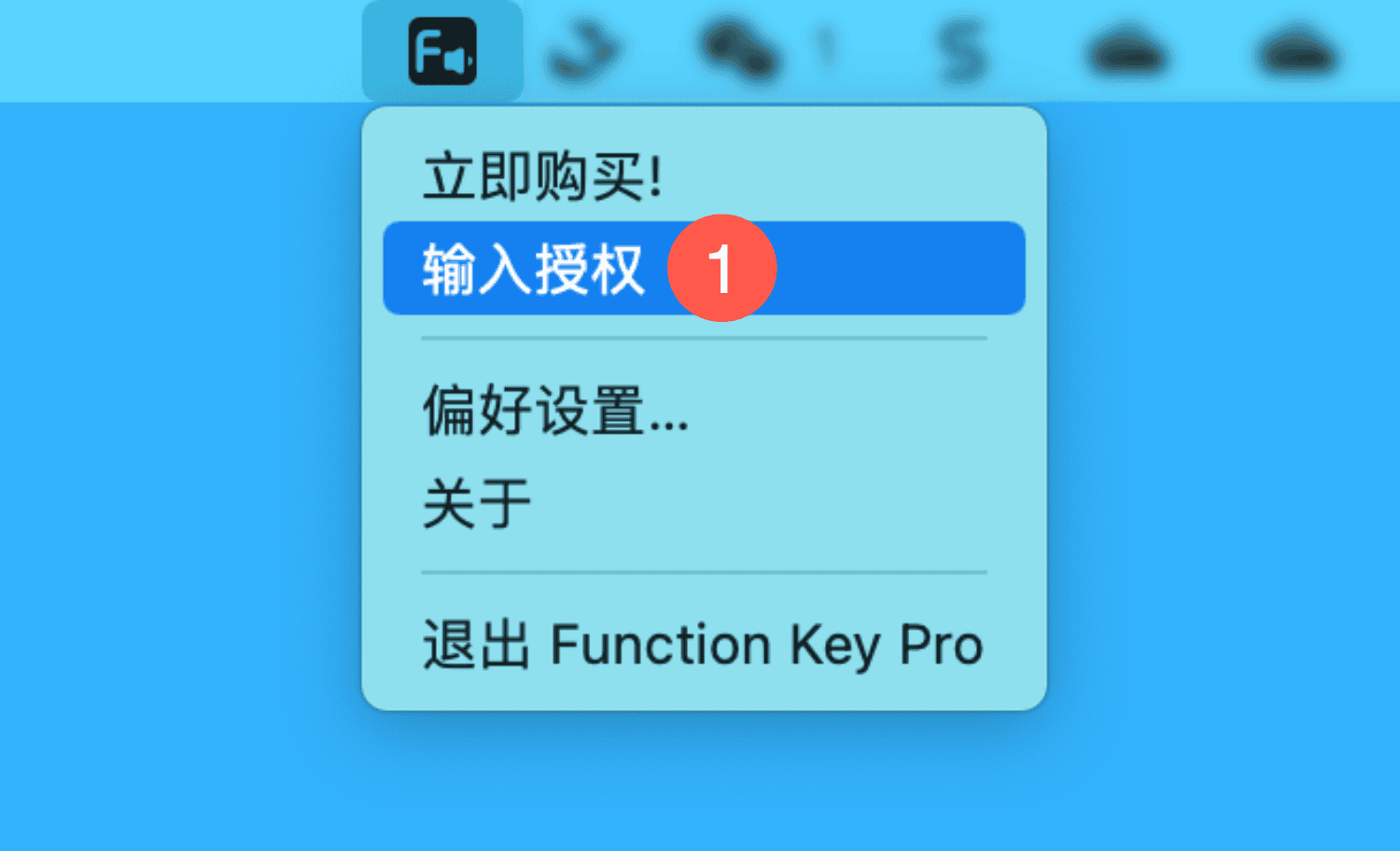 一、运行 Function Key Pro 后,依次点击菜单栏「软件图标 > 输入授权」: