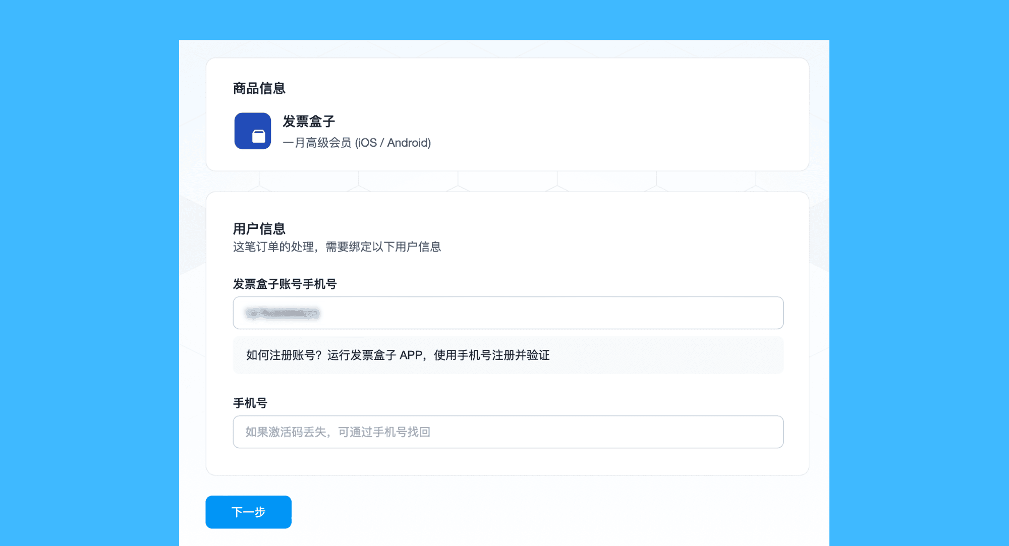 二、在本店完成付款后,前往「用户信息页面」,填写步骤一所用手机号,等待数分钟即可激活完成。