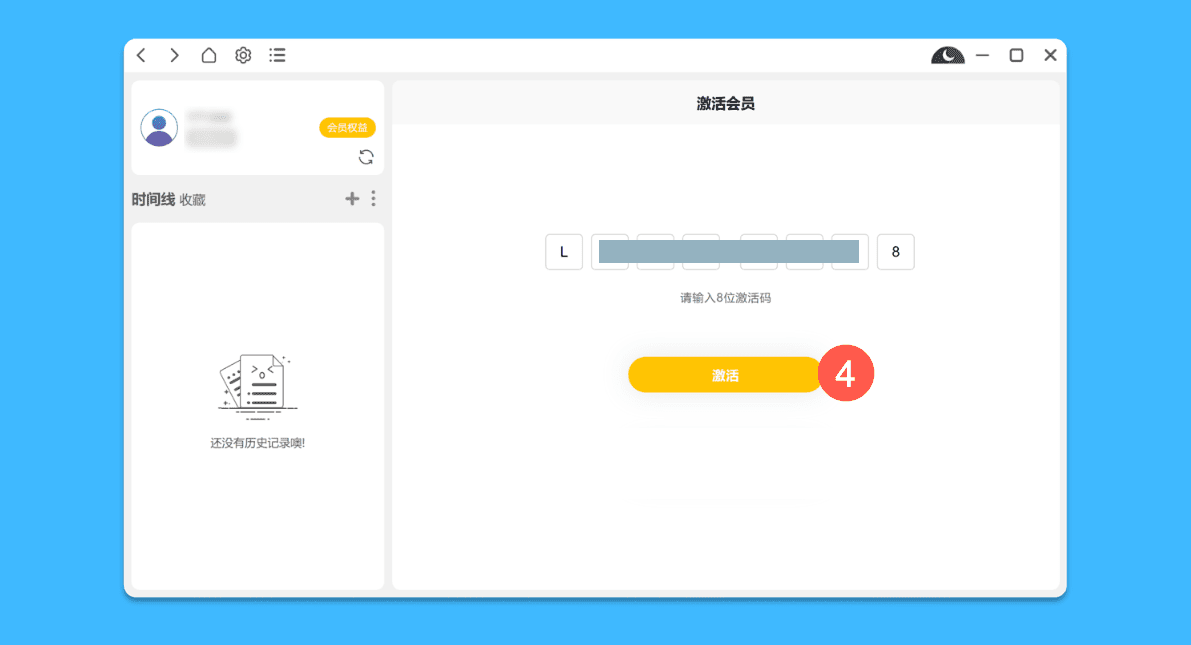 二、在输入框内粘贴激活码,点击「激活」按钮即可完成激活。