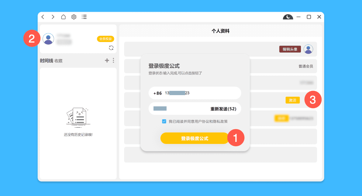 一、运行「极度公式」后,完成账号注册和登录,接着依次点击「头像 > 激活」按钮;