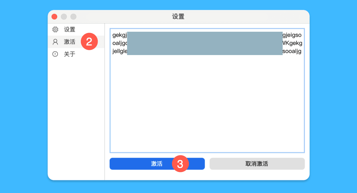 二、在弹窗中切换至「激活」选项卡,粘贴激活码,点击「激活」即可解锁对应会员时长。