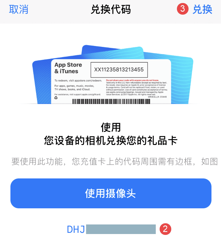 三、在输入框中填写兑换码,或使用摄像头对准兑换码获取,再点击「兑换」按钮,即可兑换成功并下载。