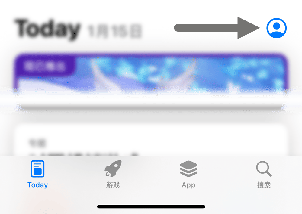 一、在 iOS 设备打开 App Store 应用,点击右上角人物头像;