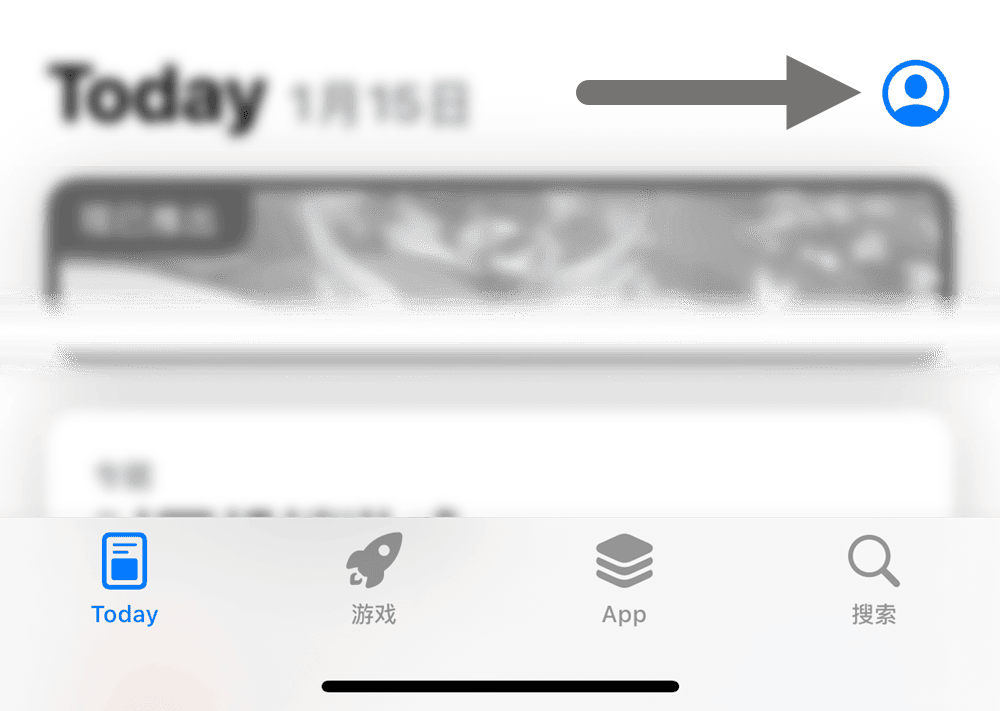 一、在 iOS 设备打开 App Store 应用,点击右上角人物头像;