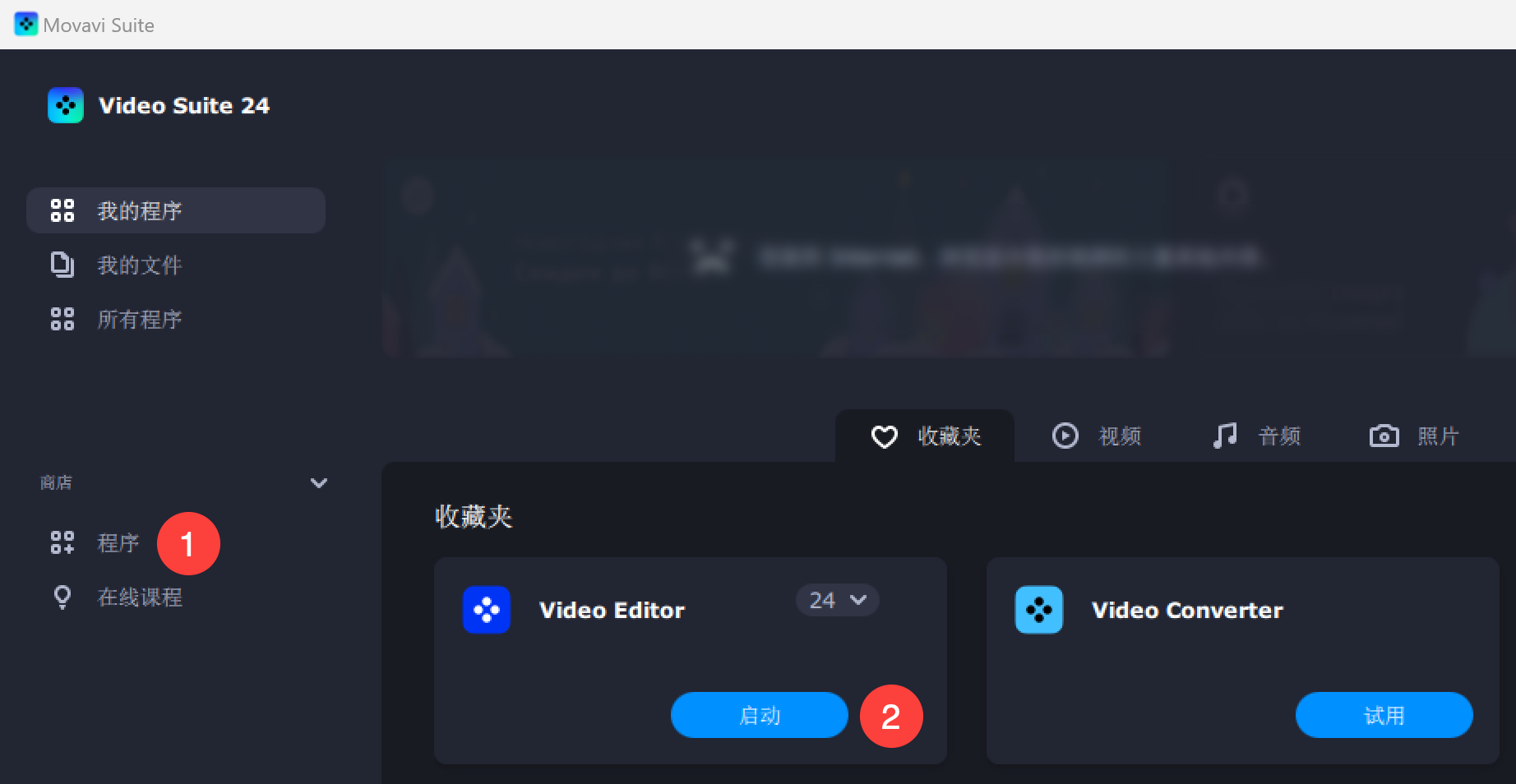 一、运行 Movavi Video Suite 后,点击「程序」选项卡,启动 Video Editor;