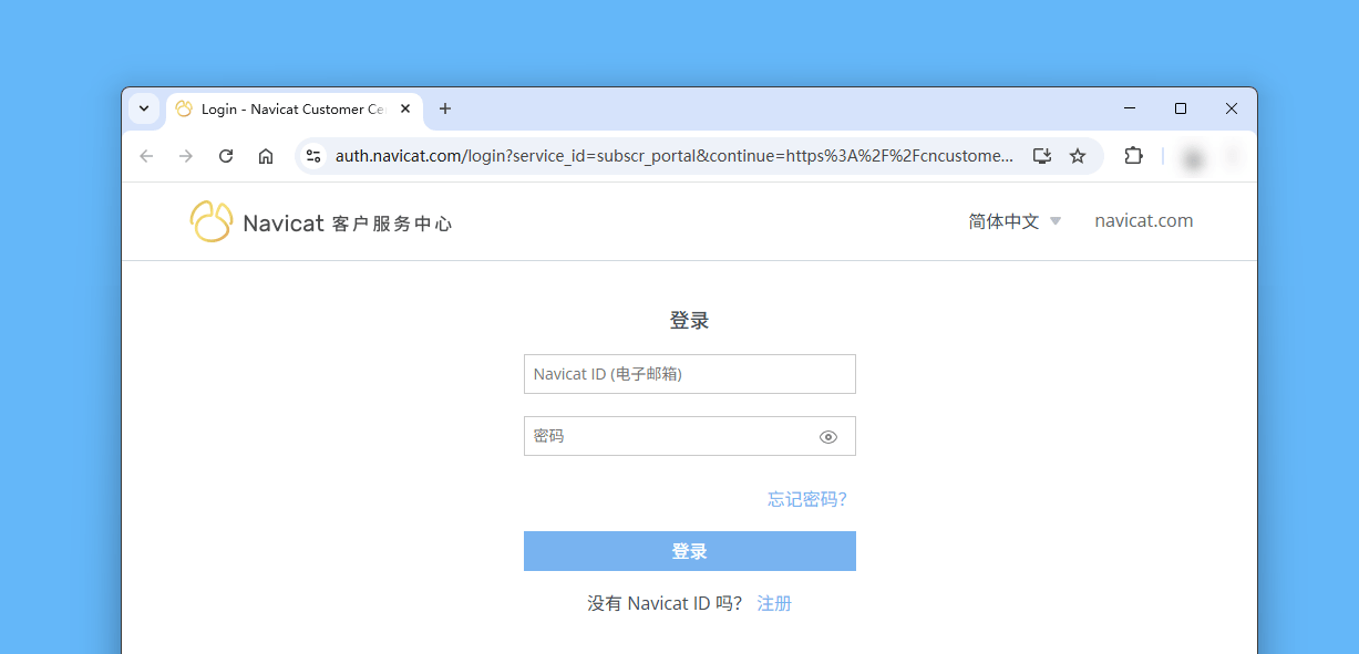 一、在等待订单处理时,可访问 Navicat 客服中心,注册账号: 前往官网
