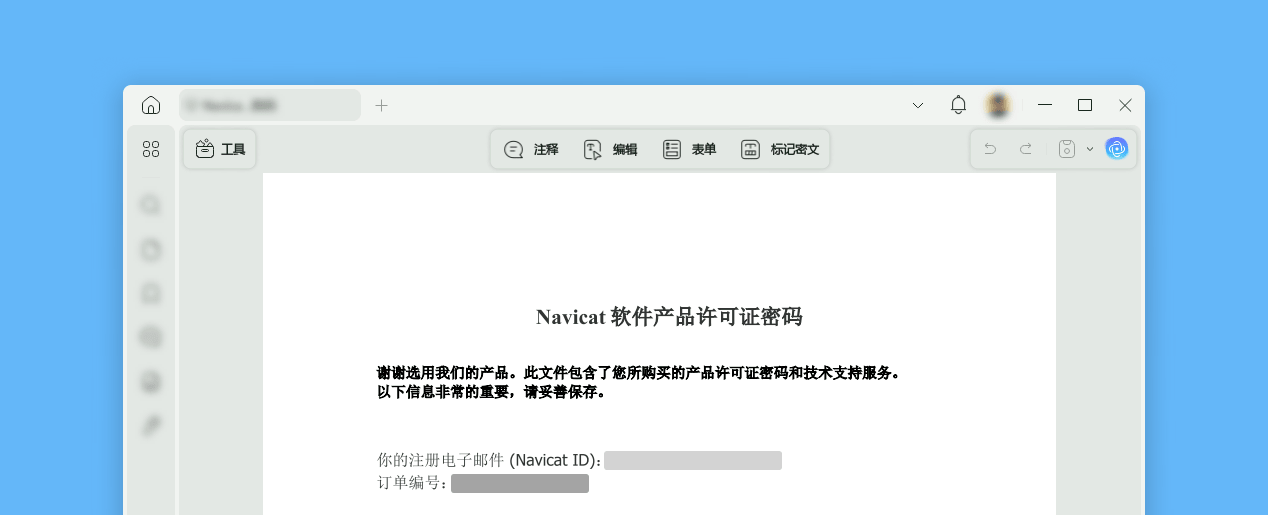 二、收到授权邮件后,请参考其中的 PDF 教程文档,激活 Navicat 软件。