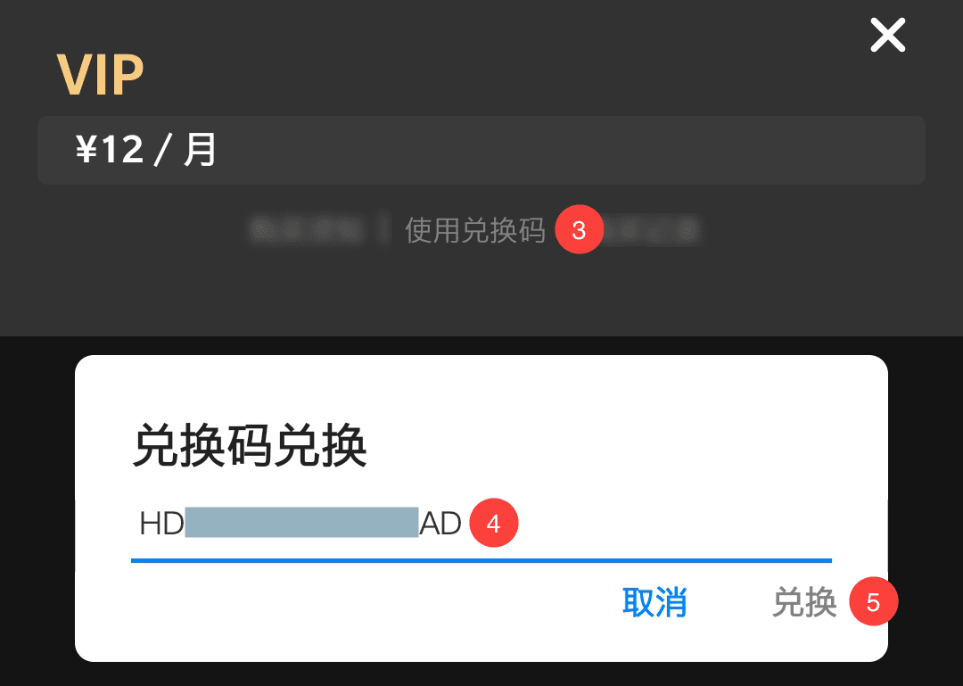 三、在弹出的窗口中点击「使用兑换码」,输入获得的授权码,点击「兑换」即可完成激活。