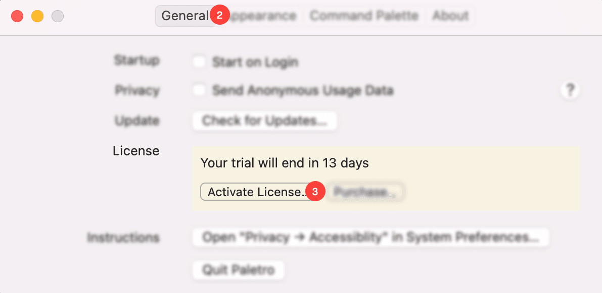 二、在新窗口中依次点击「General > Activate License…」按钮;