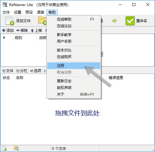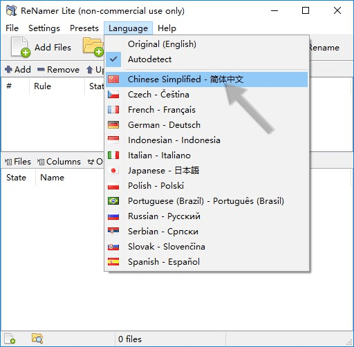 一、在第一次打开 ReNamer 之前,您可以通过下方图示将软件语言更改为中文,便于您接下来的软件注册及使用;