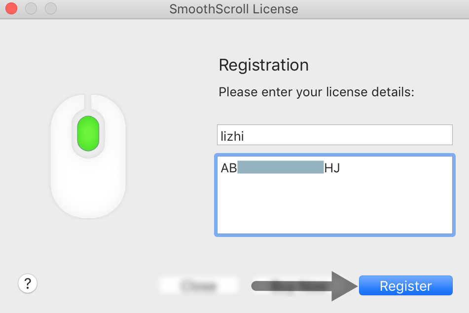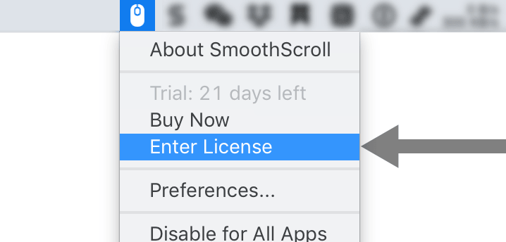 一、运行 SmoothScroll 应用后,点击菜单栏图标的「Enter License」选项;