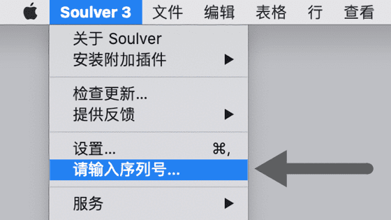一、启动软件,点击顶部菜单栏的「Soulver 3 > 请输入序列号…」选项;