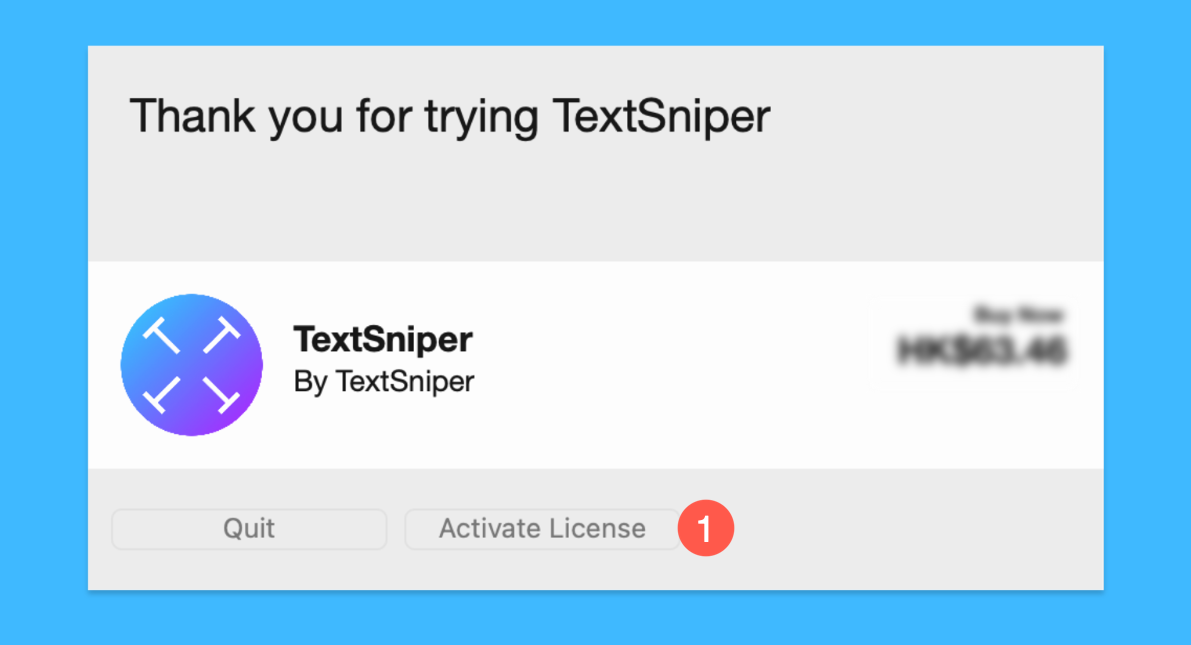 一、运行 TextSniper 后,在弹窗中点击「Activate License」按钮;