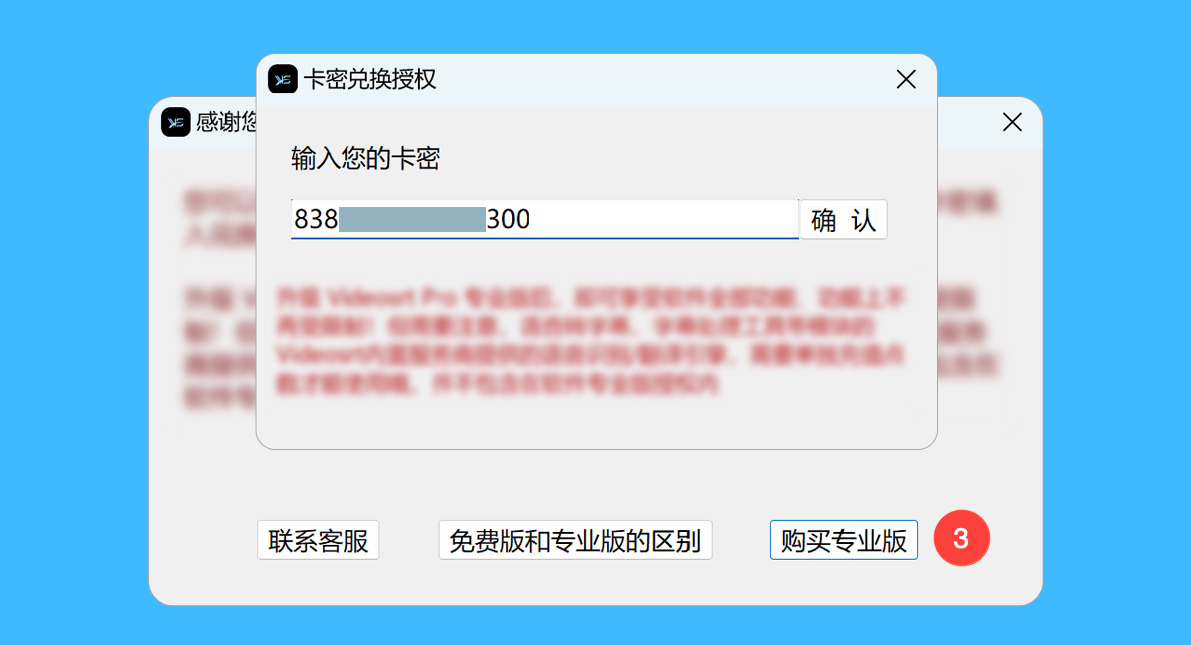 二、点击「购买专业版」后,粘贴购买后获取的授权码,点击「确认」即可解锁对应会员时长。