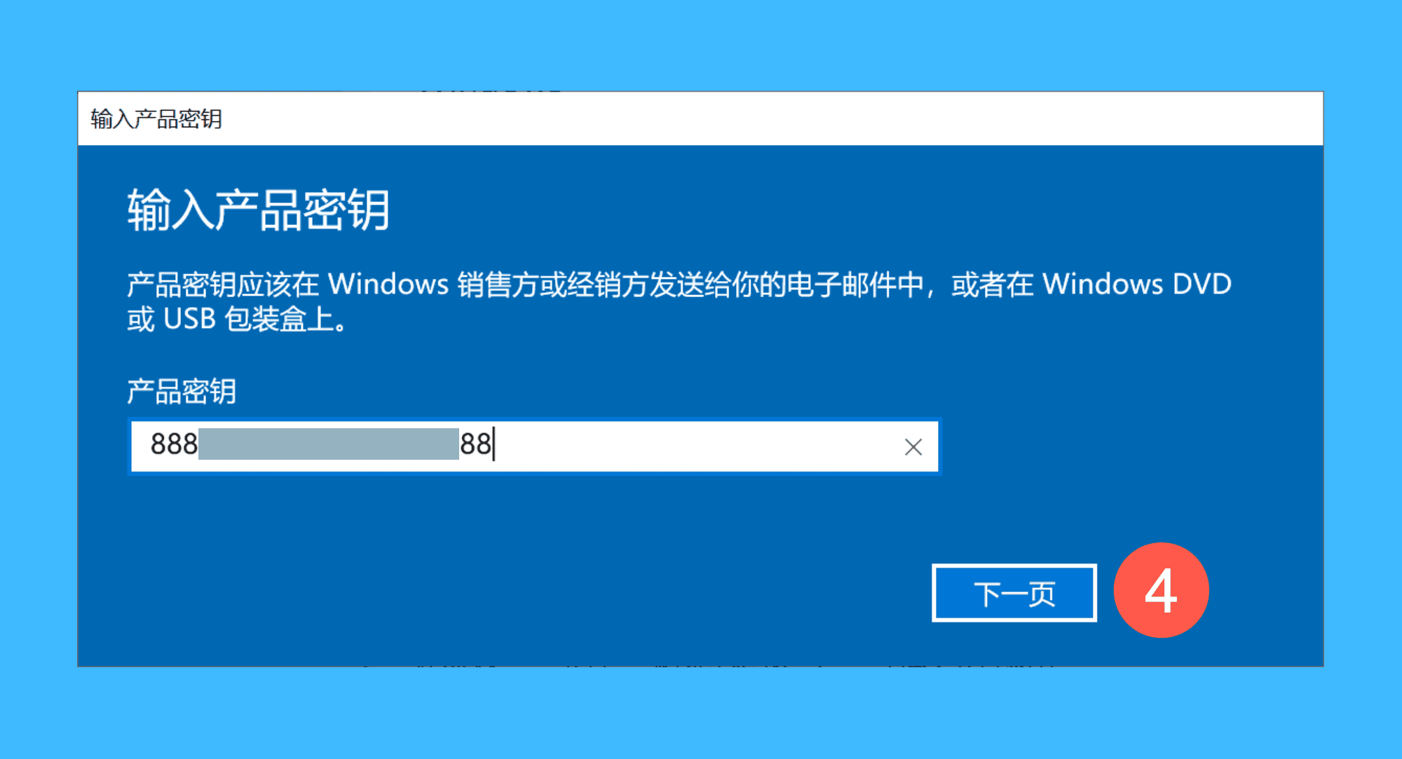 四、在弹窗中粘贴激活码,点击「下一页」按钮,等待激活完成即可。