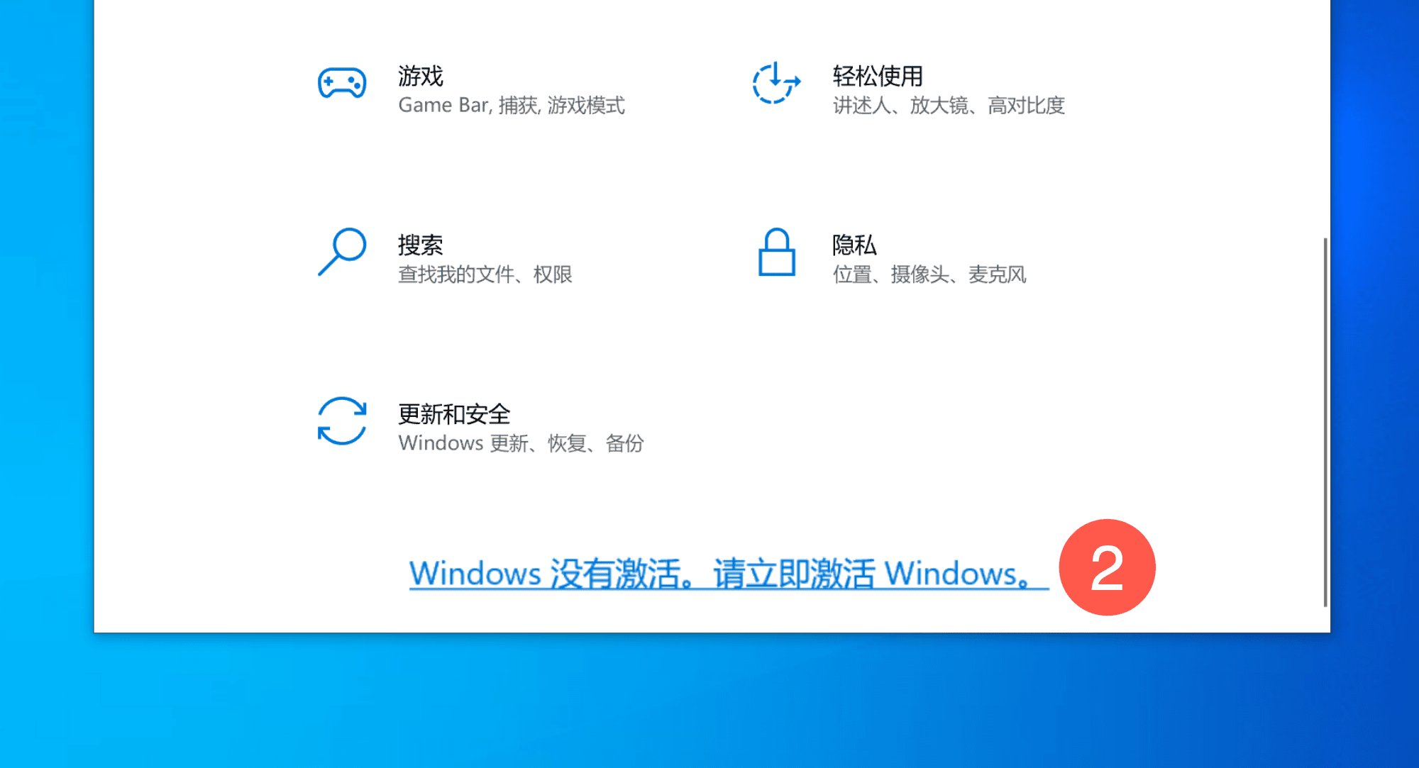 二、在设置界面中,下滑找到并点击「Windows 没有激活。请立即激活 Windows。」;