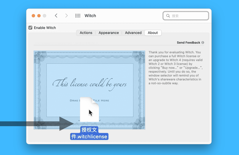 二、下载授权邮件中的授权文件,将其拖拽到激活窗口中松开,即可解锁全部功能。